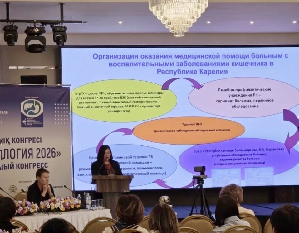 Наши ведущие врачи — д.м.н., профессор, зав. кафедрой госпитальной терапии Медицинского института им.А.П.Зильбера ПетрГУ, главный внештатный терапевт МЗ РК Наталья Николаевна Везикова и д.м.н., профессор кафедры госпитальной терапии МИ ПетрГУ, главный внештатный нефролог, гастроэнтеролог МЗ РК, зав.нефрологическим отделением Республиканской больницы им.В.А.Баранова Ольга Юрьевна Барышева выступили в роли модераторов и членов экспертного совета.