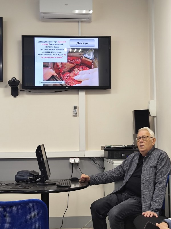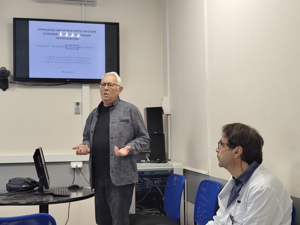Для коллег хирургического отделения нашей больницы профессор Горский провёл лекцию «Принципы хирургического лечения распространённого перитонита», в ходе которой поделился богатым практическим опытом и осветил современные подходы к лечению этой опасной патологии.