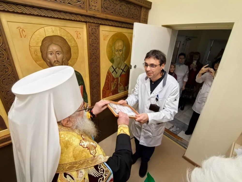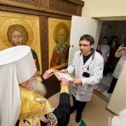 — Часовня освящается во имя святых преподобномучениц, княгини Елисаветы и инокини Варвары, — сказал митрополит Константин. — Они посвятили себя благотворительной деятельности, основали знаменитую на весь мир Марфо-Мариинскую обитель милосердия в Москве и приняли мученическую кончину, погибнув в нечеловеческих условиях. Вот в честь этих жён — а больничные коллективы в основном женские — в честь этих святых жён и названа эта часовня. Чтобы, взирая на их крепость веры и на их мужество, мы все исполнялись теми же самыми качествами – твёрдостью веры, терпением, мужеством перенесения тягот и скорбей и милосердием, от которого все больные так нас ждут. Помолимся!