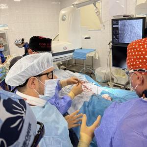 В ходе мастер-класса врачи по рентгенэндоваскулярным диагностике и лечению и сердечно-сосудистые хирурги нашей больницы выполнили операции двум пациентам кардиохирургического отделения под руководством специалиста Федерального специализированного сосудистого центра Дмитрия Дмитриевича Зубарева, кандидата медицинских наук, заведующего отделением эндоваскулярной хирургии ФГБУ «НМИЦ им.В.А.Алмазова» Минздрава России.